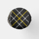 Clan MacPherson crest badge surrounded by a strap and buckle over dress tartan background. Custom text.