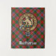 Clan MacPherson crest badge surrounded by a strap and buckle over tartan background. Custom text.