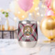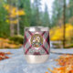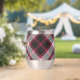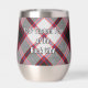 Clan MacPherson badge de crête entouré d'une sangle et boucle sur l'arrière - plan tartan de chasse. Texte personnalisé des deux côtés.