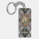 Clan MacPherson crête badge entouré d'une sangle et boucle sur l'arrière - plan écossais habillé. Texte personnalisé des deux côtés.