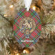 Clan MacPherson badge de crête entouré d'une sangle et boucle sur l'arrière - plan tartan. Texte personnalisé des deux côtés.
