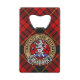 Clan MacQueen badge en crête entouré d'une sangle et boucle sur fond tartan. Texte personnalisé des deux côtés.