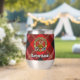 Clan Marjoribanks crest badge surrounded by a strap and buckle over tartan background. Custom text on both sides.