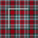 Fabric in the family tartan for Clan Metcalf, an intricate traditional plaid pattern in red, green, and light grey, with black and blue accents. Pattern repeats every 4". Special order smaller or larger scale via https://plaidwerx.com/contact.htm