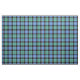 Fabric with the ancient tartan for Clan Mitchell. Traditional Scottish plaid pattern shared by clans Hunter, Galbraith, Mitchell, and Russell, in light blue, green, and black, with bright red accents. Colours represent organic dyes used in early textile production. Pattern repeats every 3". Special order larger scale via https://plaidwerx.com/contact.htm