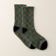 Chaussettes avec le tartan du clan Moran, un motif à carreaux classique en vert forêt et noir, avec des accents dorés, rouges et bleus royaux. Disponible en deux tailles unisexes.