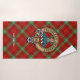 Clan Morrison badge crête entouré d'une courroie et boucle sur l'arrière - plan tartan rouge. Texte personnalisé sur chaque serviette.