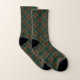 Chaussettes avec le tartan de clan Murphy, un motif plaid classique en vert, brun et noir de forêt, aux accents rouge vif, jaune et blanc crème. Aussi connu sous le nom de Tara Tartan. Disponible en deux tailles unisexes.