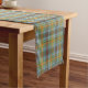 Table runner with the O'Brien family tartan, a traditional plaid pattern in green and orange, with light blue, red, and bright yellow highlights. Great for weddings, family reunions and home decor accents. Choose from three sizes.