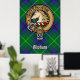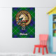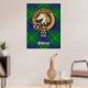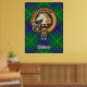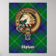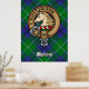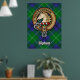 Clan Oliphant crest badge surrounded by a strap and buckle over tartan background. Custom text.