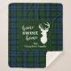 Cute home sweet home couverture de Noël vous pouvez facilement customiser en cliquant sur le bouton "Personnaliser", Avec silhouette de cerf et clan Campbell tartan militaire en vert bleu à damiers motif. Parfait pour vos nuits douillettes pendant les vacances. Fait un grand cadeau de ménage