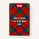 Clan Robertson crest badge surrounded by a strap and buckle over tartan background. Custom text.