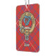 Clan Rose crest badge surrounded by a strap and buckle over tartan background. Custom text on both sides.