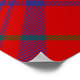 Clan Rose crest badge surrounded by a strap and buckle over tartan background. Custom text.