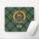 Clan Scott crest badge surrounded by a strap and buckle over green tartan background. Custom text.