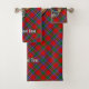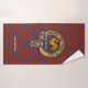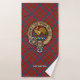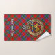 Clan Sinclair badge de crête entouré d'une courroie et boucle sur l'arrière - plan tartan rouge. Texte personnalisé sur chaque serviette.