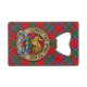 Clan Sinclair badge de crête entouré d'une courroie et boucle sur l'arrière - plan tartan rouge. Texte personnalisé des deux côtés.