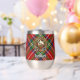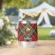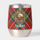 Clan Stewart écusson entouré d'une courroie et boucle sur l'arrière - plan royal tartan. Texte personnalisé des deux côtés.