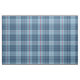 Fabric in the family tartan for Clan Thorburn, a traditional Scottish plaid pattern from 1992 in dark royal blue and sky blue with bright red accents. Pattern repeats every 4". Special order smaller or larger scale via https://plaidwerx.com/contact.htm
