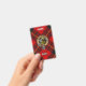 Clan Wallace crest badge surrounded by a strap and buckle over tartan background. Custom text.