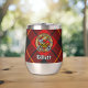 Clan Wallace crête badge entouré d'une sangle et boucle sur l'arrière - plan tartan. Texte personnalisé des deux côtés.