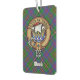 Clan Wood crest badge surrounded by a strap and buckle over tartan background. Custom text on both sides.