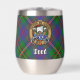 Clan Wood badge crête entouré d'une courroie et boucle sur l'arrière - plan tartan. Texte personnalisé des deux côtés.