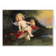 A charming vintage greeting card featuring a cute little cherub sitting on a mushroom with a owl, painted by the American illustrator/commercial artist Ellen Hattie Clapsaddle.
