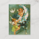 A beautiful vintage business card featuring two cherubs on a sickle moon surrounded by flowers, painted by the American illustrator/commercial artist Ellen Hattie Clapsaddle.