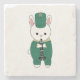 Do you like cute coasters? This coaster has a cute white rabbit playing the clarinet while wearing a green and gold marching band uniform.