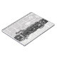 Jazzy musical themed black and white notebook with a charcoal drawing of the upper joint of a clarinet. Design includes a place for you to personalize with your initials. Original artwork by Angela Hoard-Dunn.