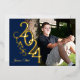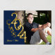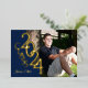 Classic 2024 graduation invitation with photo in navy blue with elegant gold foil. Modern and elegant graduate announcement with grad party information on back.