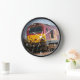 This round clock with a black surround features a photo of a vintage class 67 diesel locomotive, number 67022. Originally commissioned to pull high speed mail trains, the 67 class engines now mainly haul charter trains. The clock has white numbers and hands.