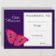 A stylish modern class award certificate award with cute butterfly image perfect for encouraging a young student. You can write in your own details. A great resource for any type of classroom teacher.