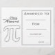 A grade school or high school class academic award certificate award with Mathematics symbols image of pi perfect for encouraging a young Math student. You can write in your own details. A great resource for any type of classroom teacher.
