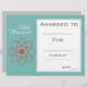 A school class academic award certificate award with atom science theme image in perfect for encouraging a young science, physics or chemistry student. You can write in your own details. A great resource for any type of classroom teacher.
