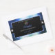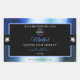 The design features a noble shimmering royal blue frame with fine decor lines, on a plain black background.