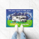 This doormat can be customized to show your name on top. When used outside of your RV, people will know who they are talking to when they see you. Non-slip rubber that won't crack or buckle, this mat resists fading, mould, and mildew and can be easily cleaned with a hose. This version is a Class C similar to a Coachmen Freelander. It can be used indoors or out and makes a great welcome mat for your campsite, wherever you may go. To customize the name, click on the text "put your name in this area" and change it to whatever you want. If you don't see the text change on the actual design, you haven't done it quite right. You might have to double-click on some devices to be able to change it. Happy camping!