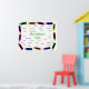A poster featuring illustrations of red, yellow, blue, green, orange, purple, pink, and brown crayons around the edges. Personalize with your name in centre. Kids names go all around. There is room for 30. This is an easy alternative to the usual cutting, taping, and writing that goes into putting together a traditional bulletin board for your classroom.