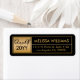 Elegant modern geometric gold tones frame with Class+of 201X modern typography design. Black background with customizable text in suggested gold tones.