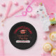 Modern black and red, personalized graduation party paper plates- Reads Congratulations! in curved, bold red letters at the top. Faux glitter, red graduation cap below with custom class year in white with shadow effect. Reads 'Graduation Party' in faux glitter, handwritten look, red script with stars and diploma/degree scroll below displaying grad's name in red lettering with shadow. On black background, which may be changed to any colour. Complements red and black school colours, formal college graduation, modern graduation celebrations, and glitter graduation party themes. We have matching red and black graduation party invites in our Zazzle.com/angela65* shop, as well as more personalized graduation party supplies.
