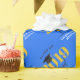 This graduation wrapping paper offers a 2019 graduation design in gold and blue with custom text for the graduate's name. The text reads: Class of 2019 Grad. A black mortarboard sits on top of the zero in the year. The background colour can be changed.