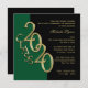 Green with gold class of 2020 graduation invitation, customize with text and font style.