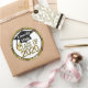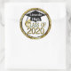 Easily personalize and add any school name or graduate's custom name onto the graduation cap of these popular, fun and classy stickers. These unique and elegant round Class of 2020, in stylish gold and black graphic text, on a contrasting white background, graduation stickers / envelope seals have a cool border background of sparkling gold sequins. (Printed, not actual sequins). Great for all ages, from preschool to junior high middle school to high school seniors to college graduates! Add some bling for each graduate in the class or personalize for the graduate with these rich looking, yet affordable and impressive stickers.