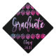 Elegant Pink Purple Typography and Flowers on black background with text Graduate Class of 2021 Graduation Tassel Cap Topper