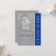 Class of 2021 simple grey, blue graduation photo invitation featuring your photo, a vertical blue band with the words “Class of 2021” in white, blue lines and grey solid colour with your details. Great design for the grad/graduate to announce their graduating from college, university or high school.