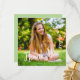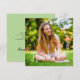 This flat square graduation thank you card features a custom photo frame that fills the entire front. Curved text, on the right side, reads: Class of 2021. The back offers a graphic of a mortarboard and custom text for you to add a personal thank you message and your name.
