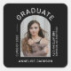 Elegant solid black and white typography graduation sticker seal template with a trendy arch shape photo and modern look.
