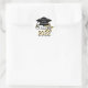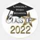 Cool, modern look "Class of 2022” graduation popular round shape envelope seals and stickers in stylish silver numbers graphic design on a clean white contrasting background and a black graduation cap graphic design with a gold tassel. A sparkling gold star also adds to this fun design. Easily add the school name, graduate's name or any custom text to personalize onto the graduation hat. Great for the whole senior graduating class!