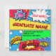 Pow! Yes! Class of 2023 comic book style invitation. Customize it with the name of the graduate, time, date, and venue address. Colourful invitations for your very own superhero senior!